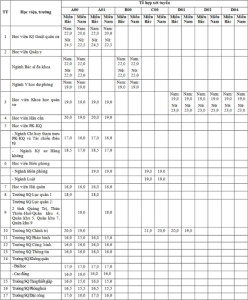 Điểm sàn vào một số trường trong quân đội dao động từ 15 – 24,5